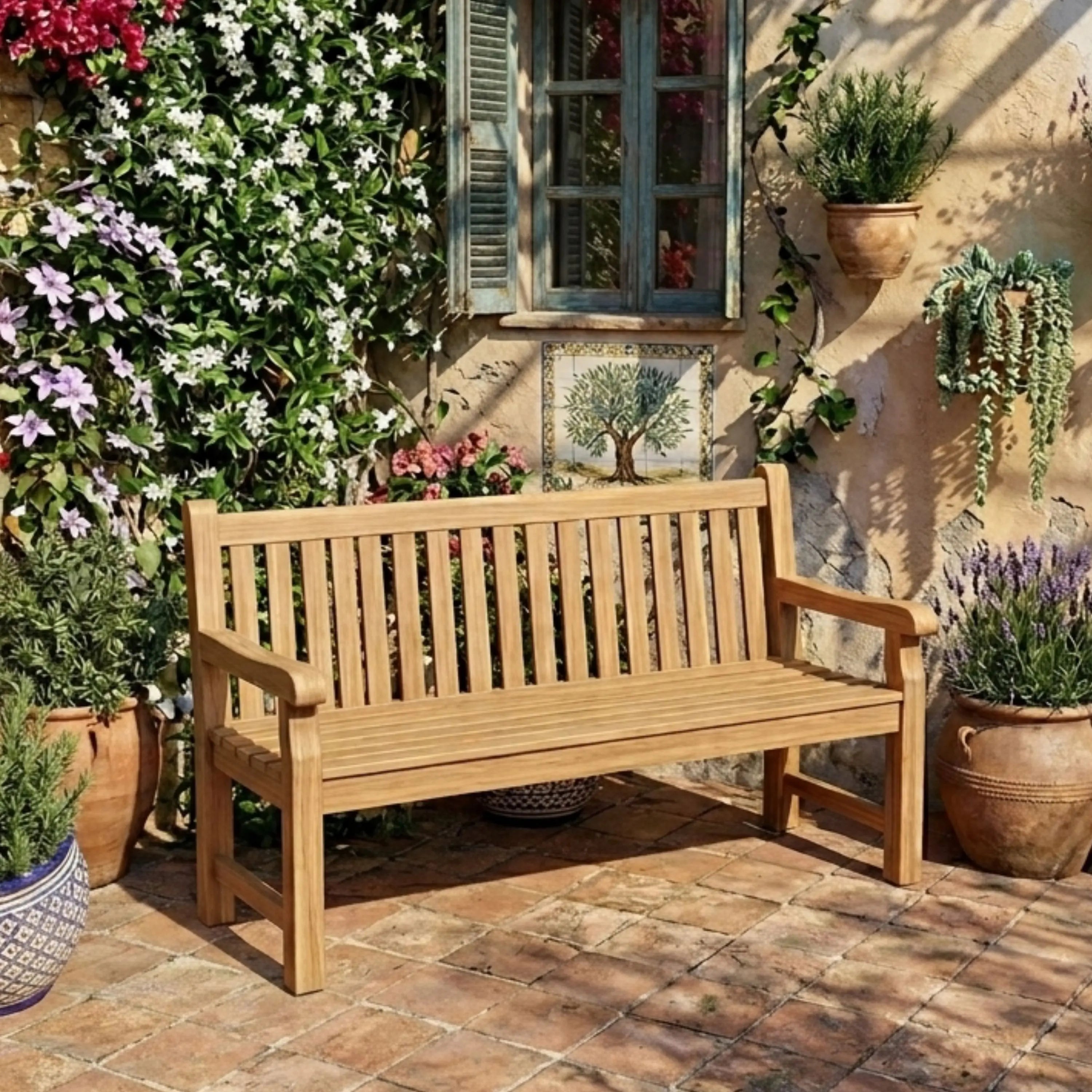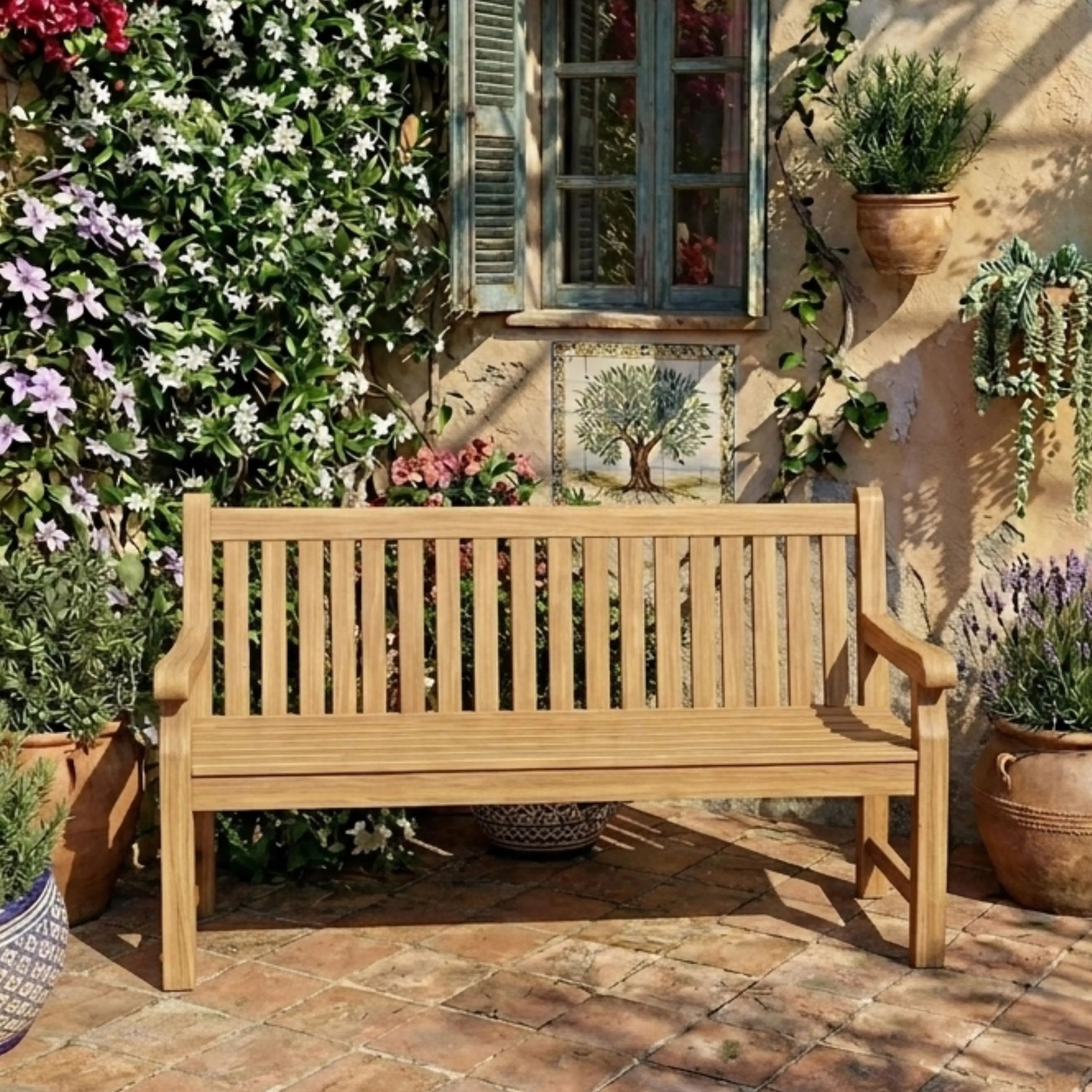 The Classic 3-Seater Bench is a classic traditional bench that will never go out of style, but quietly blends with any décor or setting. With contoured seating and curved back support, we have made subtle but careful design changes to ensure an excellent and comfortable seating experience. Place a single bench under a tree, or use a group of benches and chairs for a complete outdoor collection. The durable teak construction of this heavyweight bench allows it to withstand constant use, making it ideal for parks, shopping centers, or any commercial heavily frequented area. Over time, the wood will weather to a beautiful silver gray patina or scrub down with soap and water to keep in pristine condition. Made from genuine grade teak, it is sanded smooth without any finish in its natural form and color.