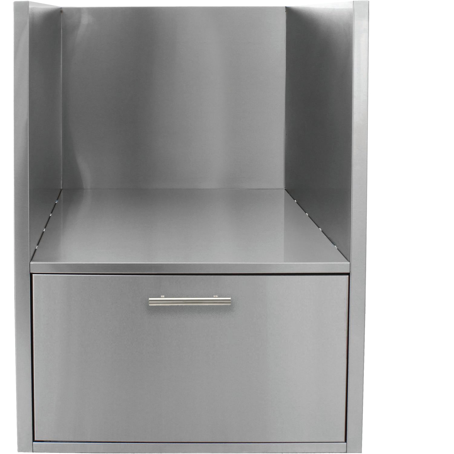 Build your kamado grill into your outdoor kitchen and give it a more finished, professional look. The Blaze Kamado Sleeve firmly supports your grill in the island and has a convenient drawer with ambient lighting to store charcoal or accessories. Designed to fit the Blaze Kamado with rotisserie upgrade.