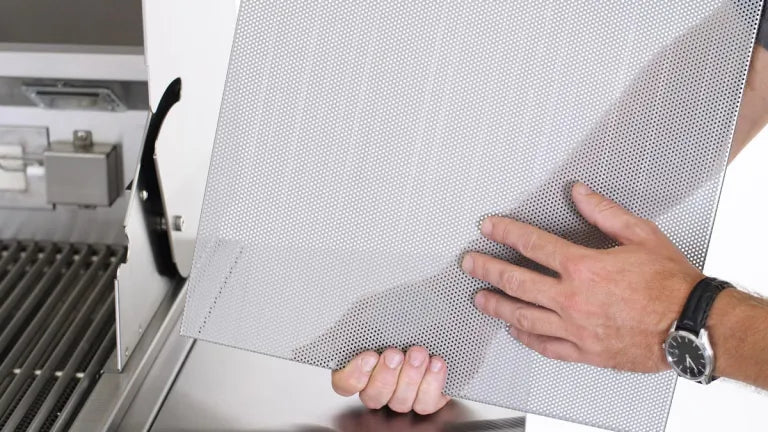 - Double-lined grill hood protects outer layer from heat discoloration and maintains more heat