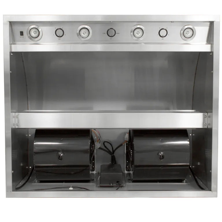 Ventilating an outdoor cooking space can be challenging due to the increased amount of smoke produced by outdoor cooking equipment. This Outdoor Vent Hood pairs a deeper hood canopy with a powerful 1000 CFM motor system to effectively clean the air from the grilling area. The industry leading 36″ depth of the Blaze Hood protrudes further over the cooking space capturing more smoke when the grill lid is opened. The Blaze Outdoor Vent Hood’s powerful suction and increased depth allows an installation further away from the cooking surface. This offers both an easier view of the cooking area along with increased comfort for the chef.