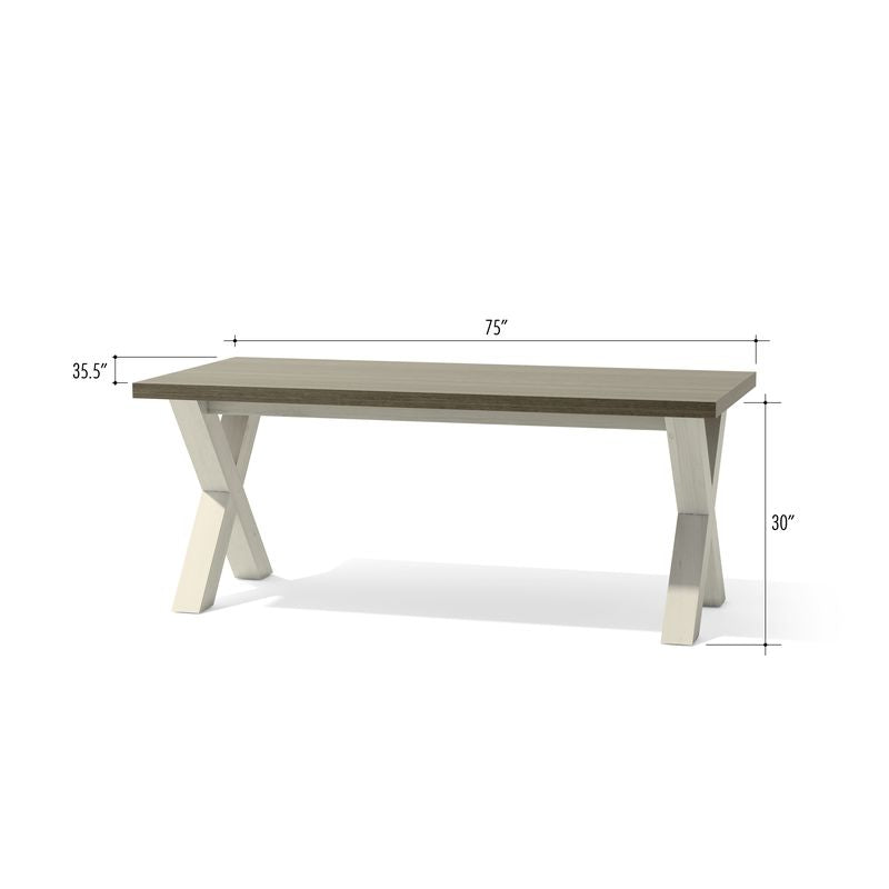 Elevate your dining experience with the Milwaukee Dining Table, a stunning blend of style and functionality. Crafted to perfection this table is designed to be the centerpiece of your dining area offering ample space and classic design. Measuring 75 inches in length by 35.4 inches in depth, it seats 6-8 people, making it perfect for family gatherings, dinner parties, and everyday meals. The table features a sophisticated grey tabletop beautifully contrasted by off-white crisscross legs, a harmonious blend of colors that adds a touch of modern elegance to any dining space, effortlessly complementing a variety of decor styles.