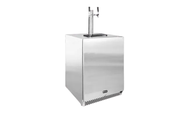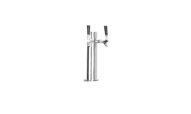 The Bull stainless steel dual tap tower is made specifically for the Bull Kegerator and allows you to pour two types of beverages.