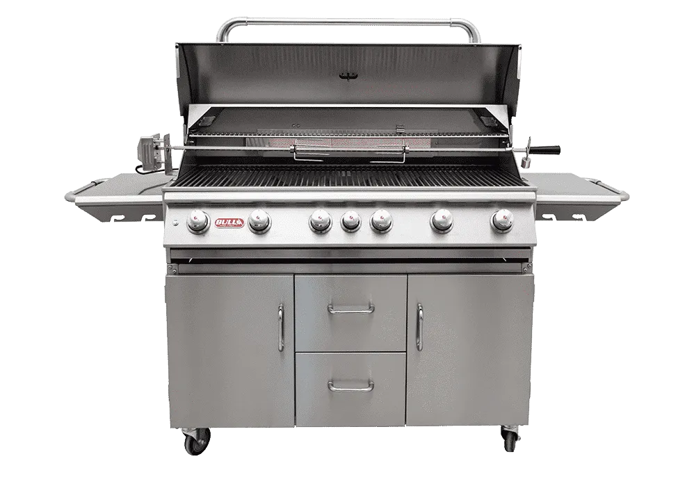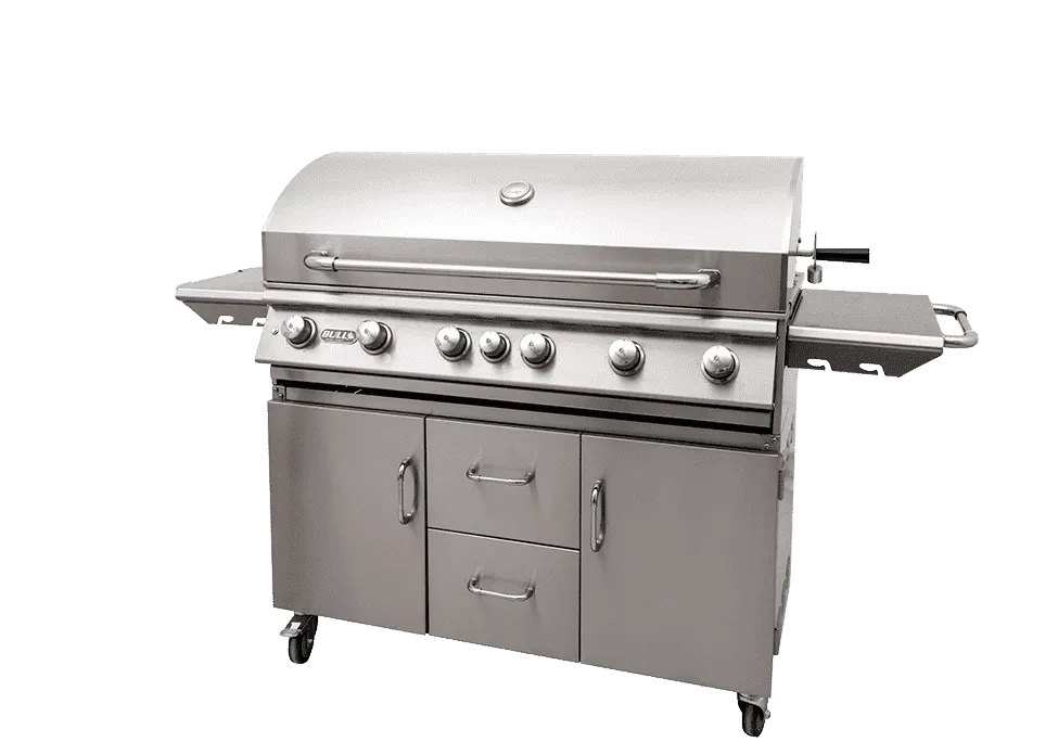 The Diablo grill cart is a 6-Burner 46” stainless steel gas barbecue grill with an Infrared back burner. Our largest Grill, the Diablo boast a whopping 105,000 BTUs of cooking power and comes standard with our Reliabull heat technology that reduces hot and cold spots creating a more even grilling surface.