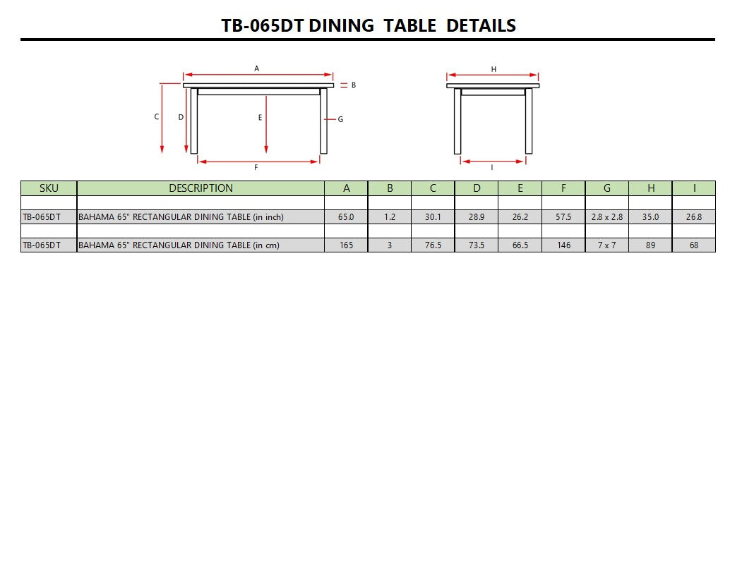 BAHAMA 65" RECTANGULAR TABLE