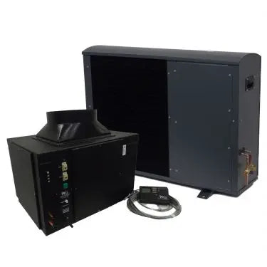 The Wine Guardian split system unit includes a fan coil unit (evaporator) and condensing system. The two units are connected with coolant lines that carry cooled refrigerant from the condenser to the fan coil and heated refrigerant back to the condenser to be cooled down again. The fan coil unit is designed to be used either as a free blowing, through the wall unit or as a remote mount unit with external ductwork connections.