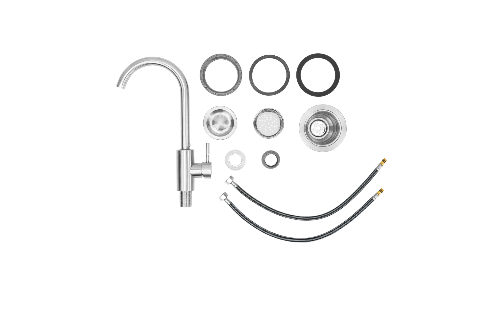 • Hot and Cold-Water Solid Stainless-Steel Swivel Faucet