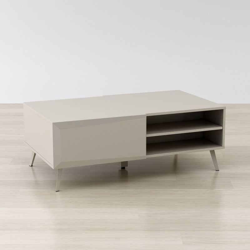 Enjoy your favorite cup of brew in the comfort of your home living room with this modern contemporary coffee table. The Altus Coffee Table made of engineered wood and finished in a grey gloss laminate is a sleek and stylish coffee table featuring ample storage space to place your favorite magazines, laptop, books and items - with two slide out drawers on opposite ends and two tier shelfs on opposite ends. The perfect complement and look for any modern living room, this table integrates appearance with practical use.