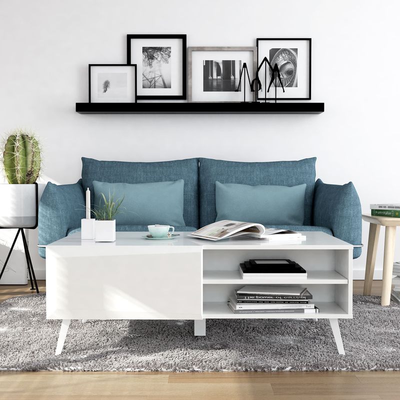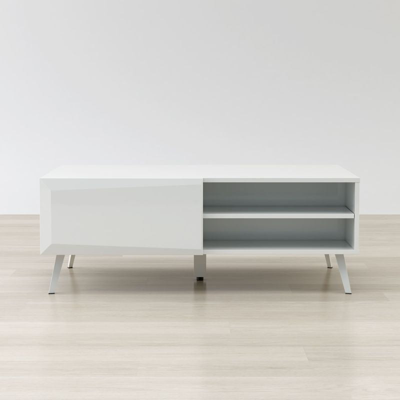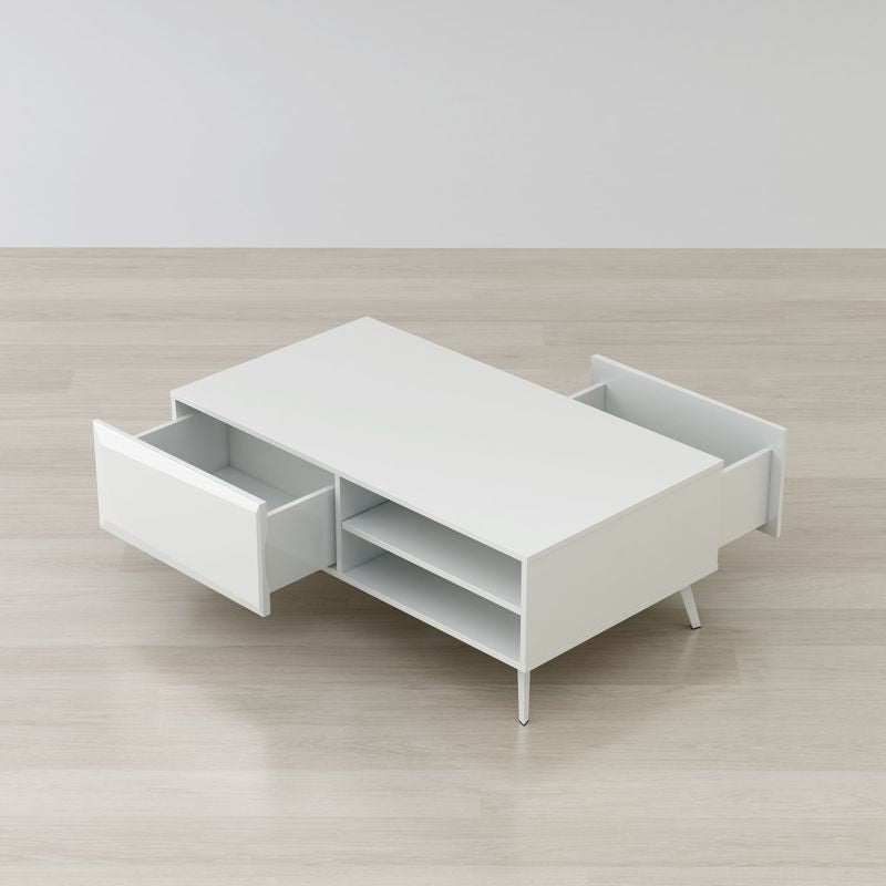 Enjoy your favorite cup of brew in the comfort of your home living room with this modern contemporary coffee table. The Altus Coffee Table made of engineered wood and finished in a white gloss laminate is a sleek and stylish coffee table featuring ample storage space to place your favorite magazines, laptop, books and items - with two slide out drawers on opposite ends and two tier shelfs on opposite ends. The perfect complement and look for any modern living room, this table integrates appearance with practical use.
