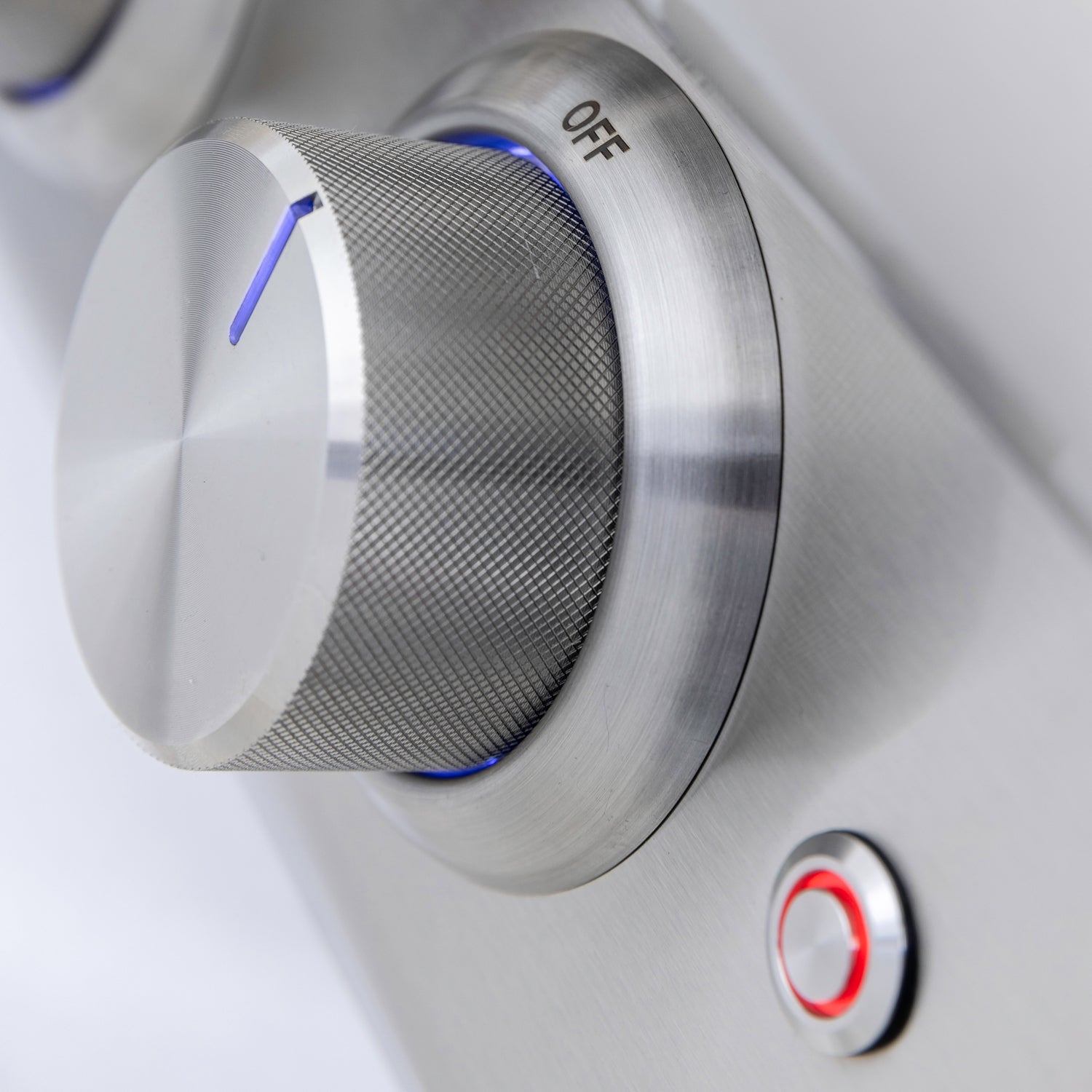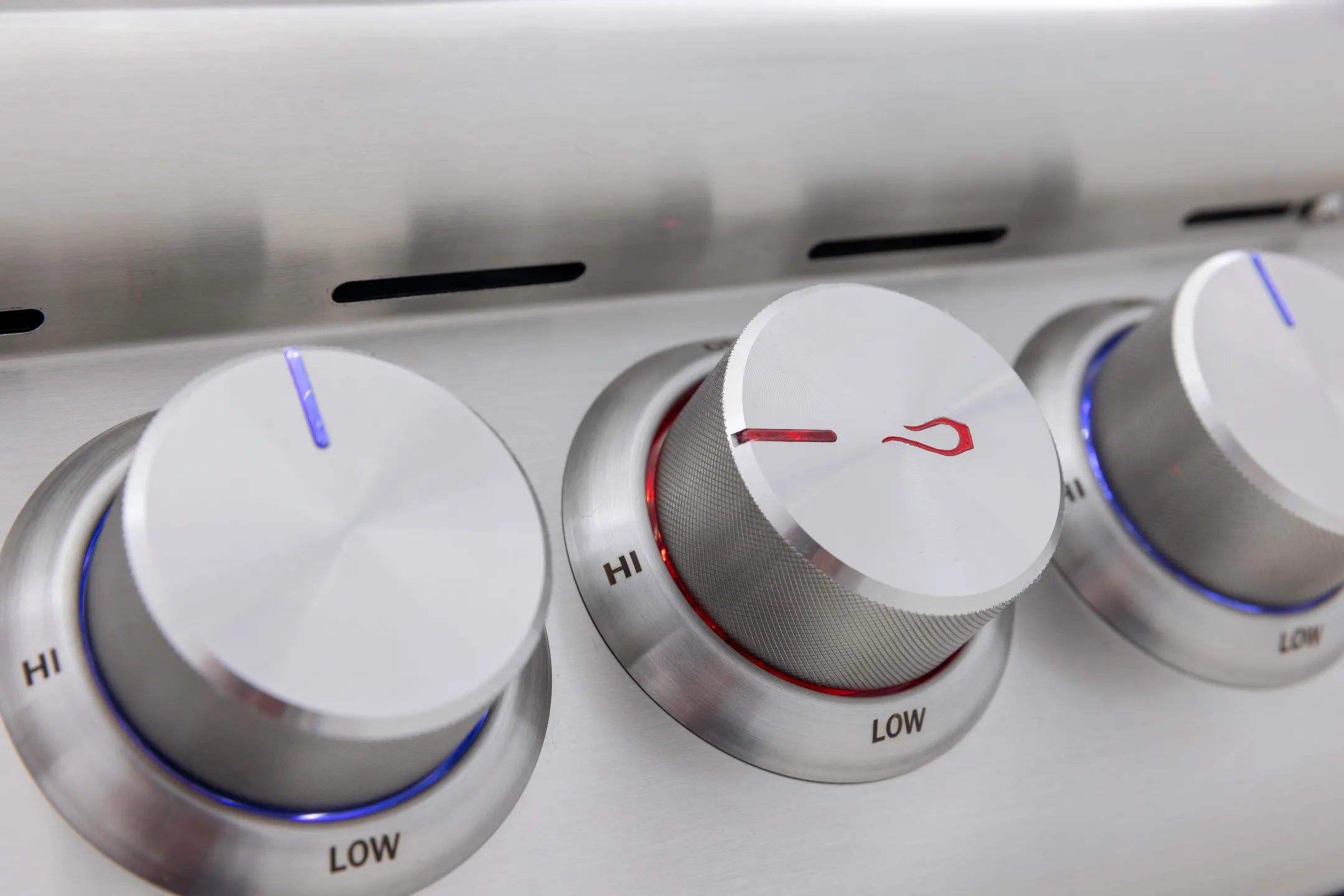 The stainless steel heat zone separators allow for different cooking zones across the grilling surface. This adds to your grilling experience, creating separate zones that can be used for different styles of cooking. The flame taming grid minimizes flare-ups while you enjoy your Blaze grill, and the full-width drip tray makes cleanup simple. Upgraded interior lights now stay on while grill is use and the new illuminated control knob change colors when the grill is ignited for a signature decorative accent. The stainless steel grill hood is double lined to protect the outer layer from heat discoloration and includes a hood-assist mechanism for effortless opening and closing. Blaze offers the 4-Burner Marine Grade Premium LTE+ in natural gas and propane, and is also available as a cart model.