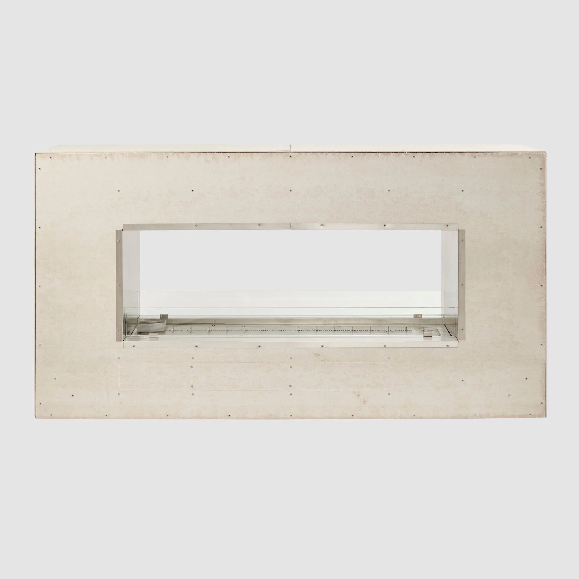 Ready-to-finish linear fireplace enclosures are made from Hardiebacker® fiber cement board and G90 marine-grade galvanized steel framing. These can be finished on-site to match your landscaping, hardscaping, or exterior design with stone or other non-combustible materials. The see-through style provides the perfect viewing area for an already beautiful backdrop. Perfect for both commercial and residential applications.