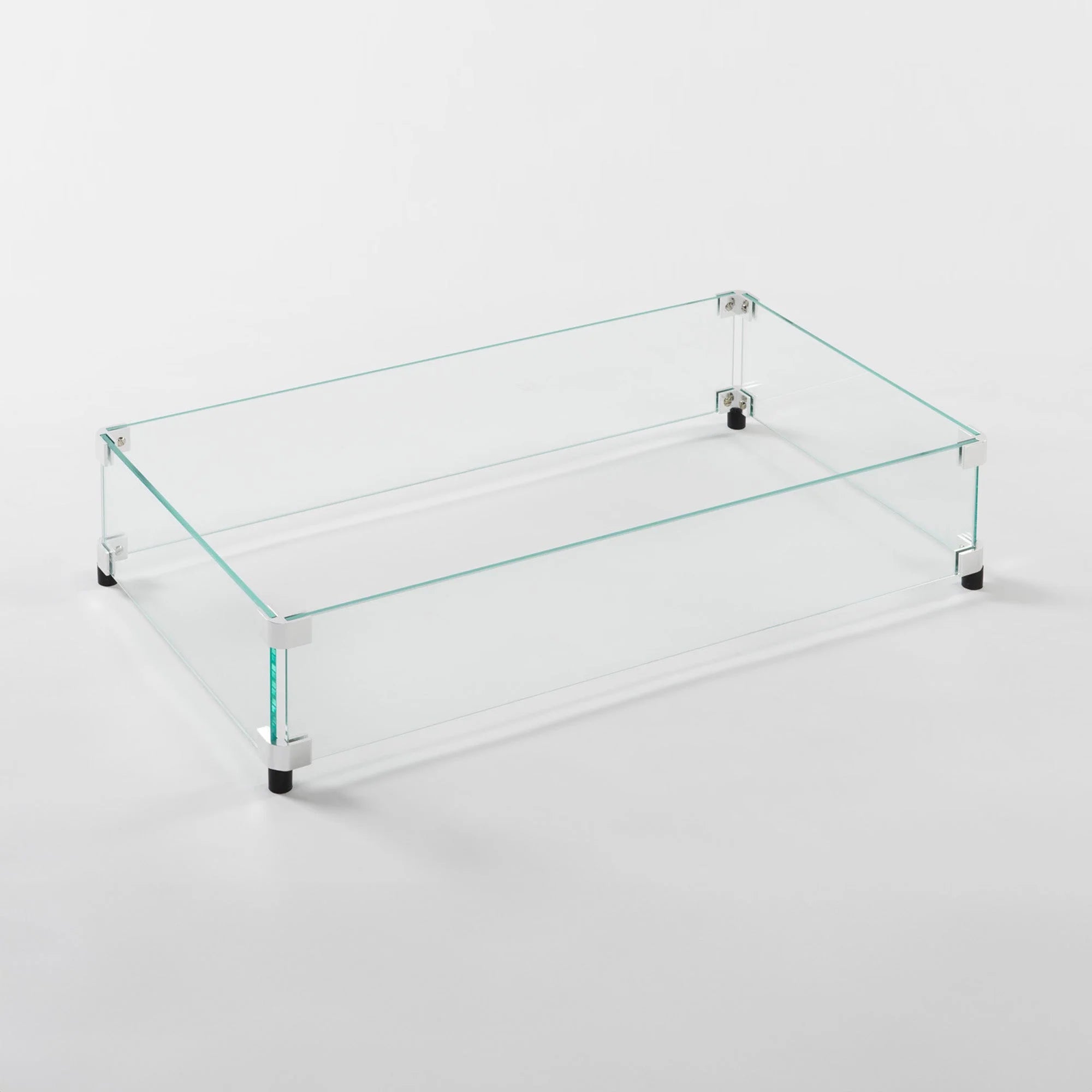 Glass wind guards not only add a layer of protection between the flame, wind, little hands, pets, and debris, but also look beautiful with the reflection of the dancing flame on your gas fire pit table.