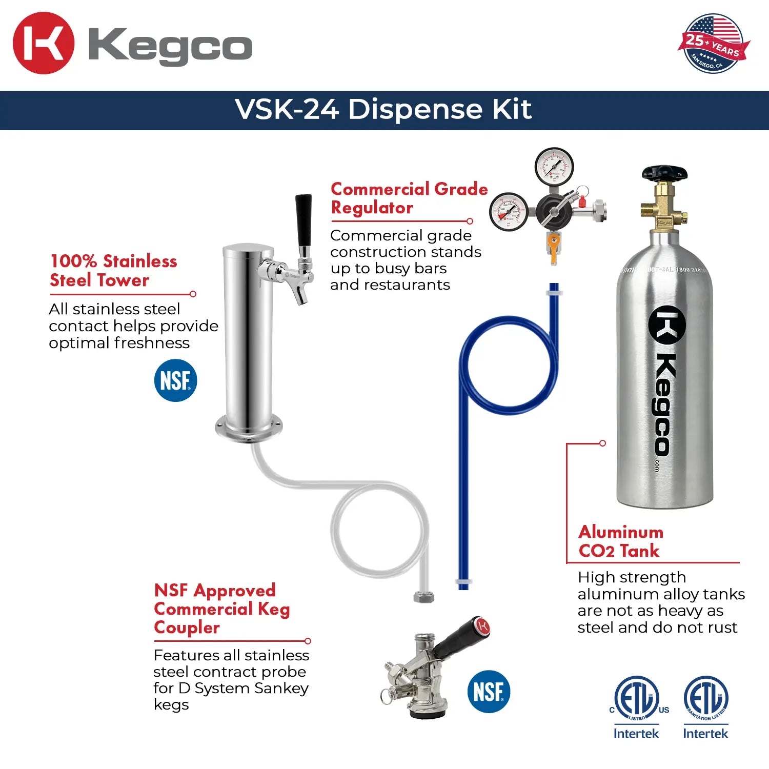 - Premium dispensing package: 100% stainless steel contact tower, premium dual gauge regulator, and a corrosion-resistant CO2 tank deliver dependable, long-lasting service.